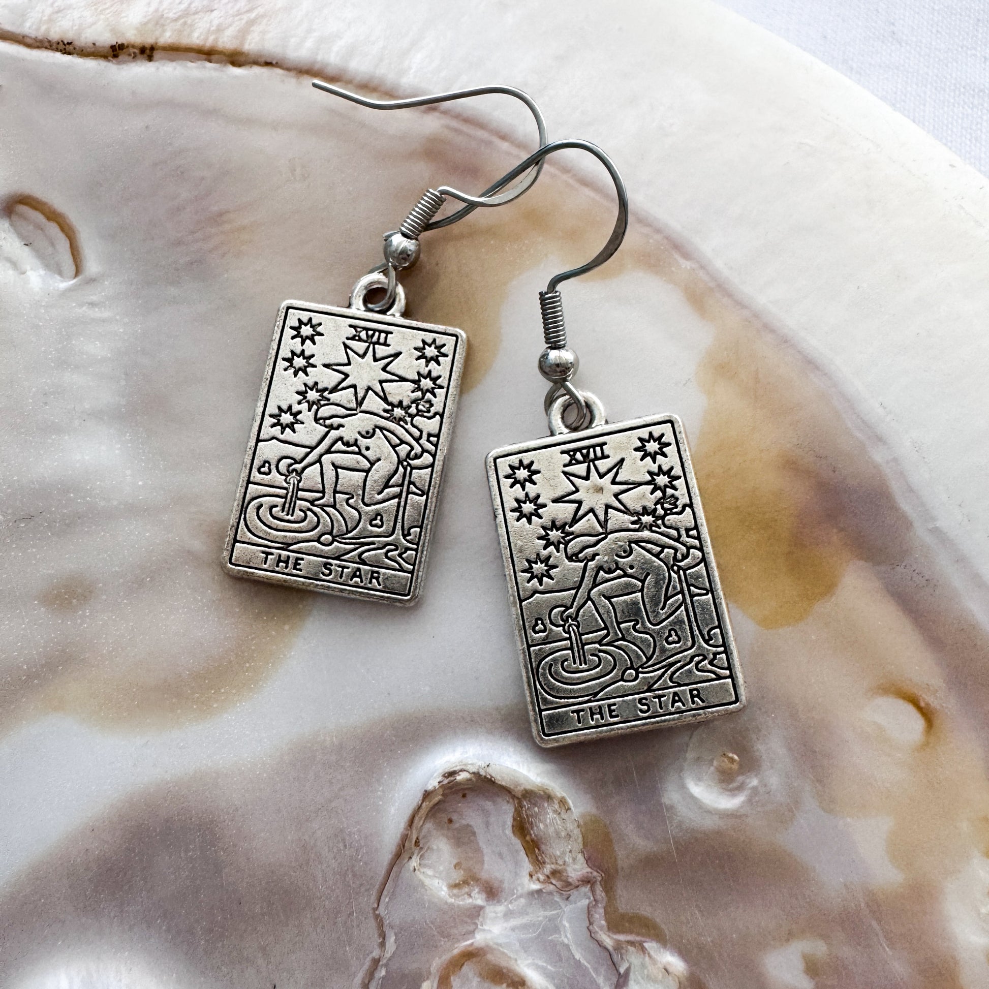 ✨ 925er Sterling Silber Ohrring Haken mit Metall Tarot Charm